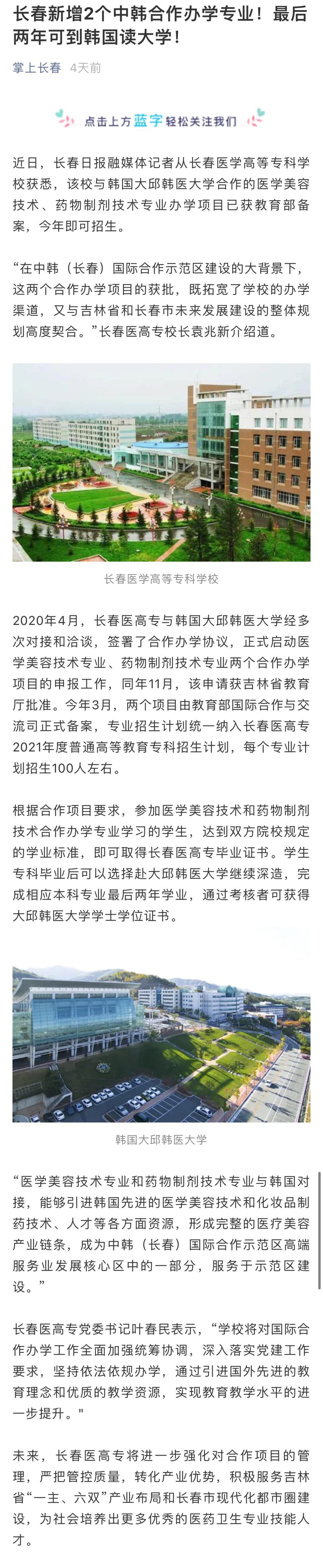 长春新增2个中韩合作办学专业!