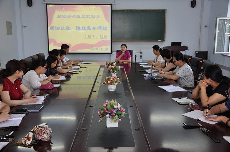 为深入学习贯彻习近平新时代中国特色社会主义思想和党的十九大精神,庆祝中国共产党成立97周年,7月11日,副校长赵欣以《廉洁从教 铸就医专师魂》为主题,为基础实训党总支全体党员上了一堂生动的党课。