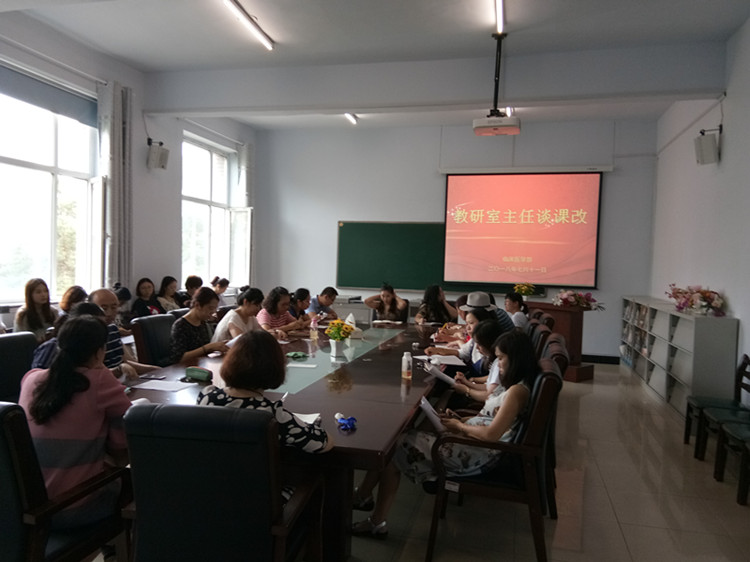 为推进诊改工作深化,7月12日中午临床医学院在三楼会议室召开了“教研室主任谈课改”暨假前工作部署会议。临床医学院院长赵冰、副院长张虹、各教研室主任及5年教龄以下青年教师参会。