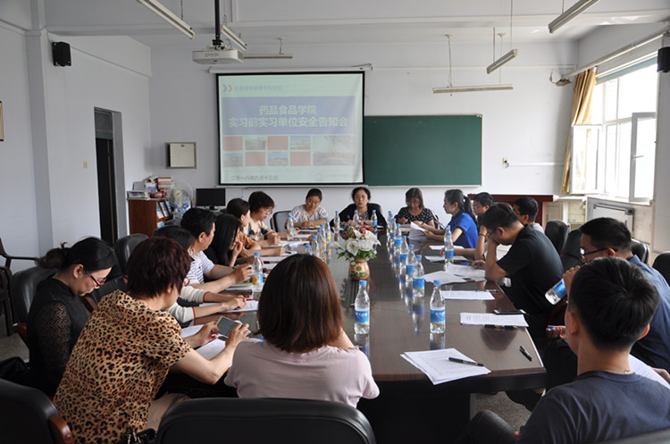 6月12日上午,药品食品学院在六楼会议室举行实习前实习单位安全告知会。会议由院长孙莹主持,药学党总支副书记高雅静及20家实习单位企业代表参加会议。