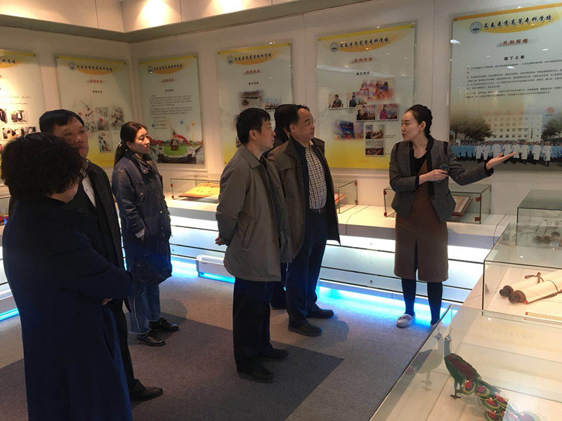 在校史馆,校领导依次参观了崛起医专、光辉历程、铿锵跨越、共创辉煌、党建工作、展望未来、校园花絮和生命的羽化八个展区,认真听取详细介绍,驻足仔细端详每一件展品、每一幅图片、每一段文字,了解每张照片背后蕴藏着的故事。校领导指出,校史馆是学校发展轨迹的宝贵记录,是学校发展和文化传承的重要载体,应尽快完善、更新和浓缩校史馆内容,使用和维护好校史馆,把校史馆作为校史校情教育的基地,组织广大师生尤其是新入职教师参观校史馆,了解学校发展历史,传承医专情怀,感受医专厚重文化底蕴,增进对医专的情感和责任。