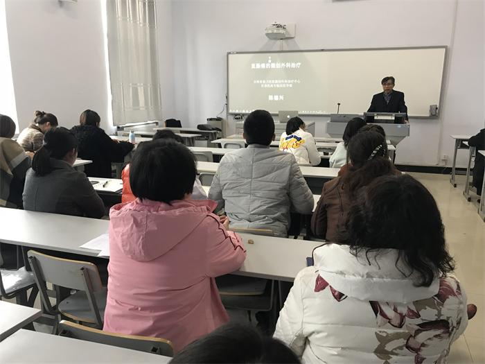 为拓展教师学术视野,了解行业前沿动态,创造学术交流机会,11月15日下午,临床医学院举办了以专家讲座为主要形式的学术沙龙活动。活动由院长助理张虹主持。本次活动邀请到原长春市前卫医院院长——陈德兴教授为院部全体无课教师做题为《直肠癌的微创外科》精彩报告。