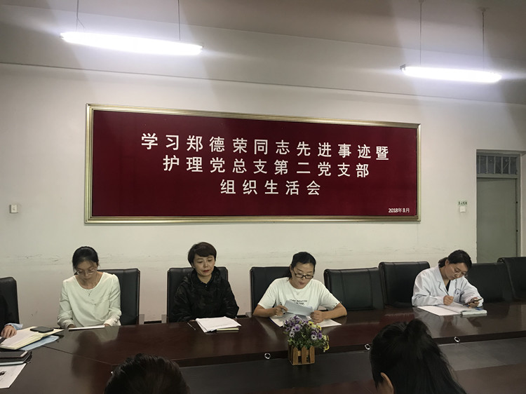 上午10:00,护理党总支全体成员首先在总支副书记王宁同志的带领下学习了学校党委2018[31]号文件,落实了召开组织生活会的具体要求;并观看了郑德荣同志先进事迹的专题纪录片。中午12:00和下午15:00,第一、第二党支部分别召开了组织生活会。会上,支部书记李宏、曹玉凤分别代表支部进行剖析整改汇报,查摆了教学、思想理论学习、与支部成员交流谈话、发挥传帮带作用、学生党员培养教育等方面的问题,并列出了相应的整改措施。支部全体党员以郑德荣同志为榜样,对照先进找差距,见贤思齐、检身正己,结合自身实际工作查找存在问题,查摆自身差距和不足,深入剖析问题根源,严肃认真开展了批评与自我批评,明确今后努力发展方向。