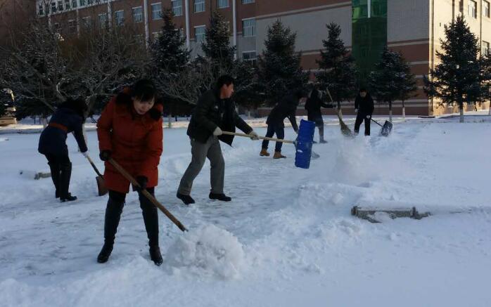 教工自发扫雪 确保校园安全