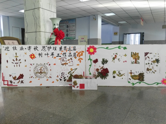 护理系于11月4、5日组织了“迎校庆寄秋思”第三届树叶手工作品展活动。活动中共计上交作品110份,其中展出优秀作品16份。同学们将片片落叶变成了一幅幅精致的树叶作品,有翱翔的孔雀,有生动形象的人物、动物,还有我校校徽、生命缘雕塑、DNA双螺旋等。学生们还结合自己的专业特点,制作出了白衣天使,推轮椅的医生等作品。