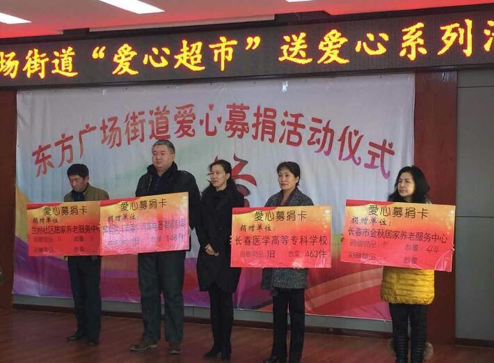 11月15日,我校在东方广场街道隆重举行了“爱心超市”送爱心活动捐赠仪式。校工会副主席杜红燕代表学校教职工向社区居民捐赠了各类衣物共计460余件。