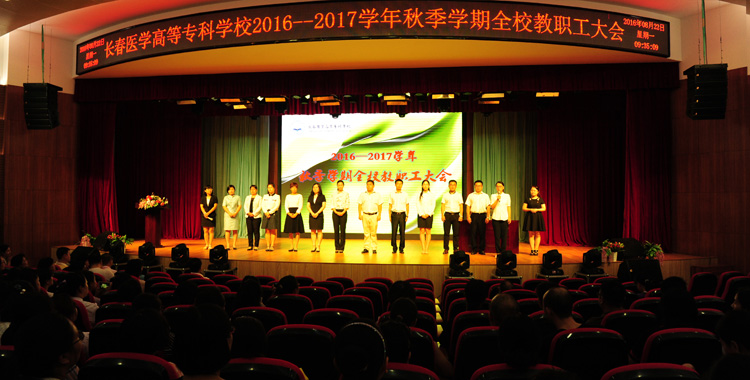 8月22日上午,伴随校歌庄重悠扬的旋律,我校于图书馆二楼报告厅召开了“2016年秋季学期全校教职工大会”,校领导班子和全体教职工参加会议。大会由校办主任王晓丹主持。