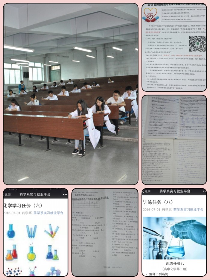 原来对药品经营与管理专业的学生来说,他们是自主招生,学生分数普遍偏低,学习主动性稍差。为了让同学们在入学后能够适应化学类课程的学习,顺利完成学业。药学系认真研究、超前谋划、积极思考、抓好落实,采取了一系列的有效措施。充分利用学生入学前近四个月的自由时间,在给新生下发录取通知书时,直接将入学前化学学习任务一并放入,学习的方式由学生关注药学系实习就业微信公众平台进行学习。学习内容由化学教研室教师提供,共分为化学学习任务八个版块和训练任务共计十六个版块。药学系系办每月负责发布通知、上传学习任务。学生及时关注,每月进行学习,共在四个月内完成所有学习,并于开学后上交学习笔记。此次的考试就是检验他们自学的学习情况。本次考试成绩将作为第一学期化学课程的平时成绩,同时也将作为学生参选各种奖励及学生干部遴选的依据之一。