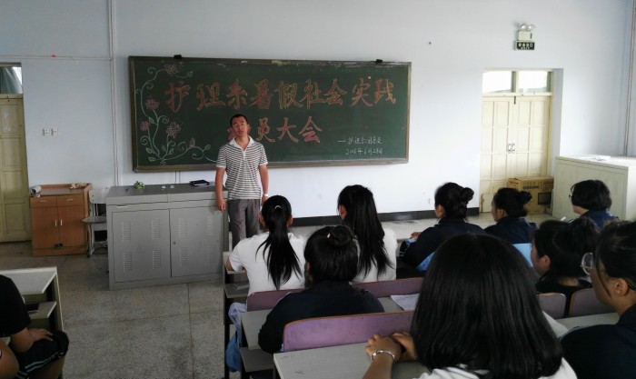 6月28日中午,护理系暑期社会实践活动动员大会在善学楼1214阶梯教室召开。护理系学办主任池明、护理系社会实践活动负责教师刘晓维以及百余名学生参加了会议。