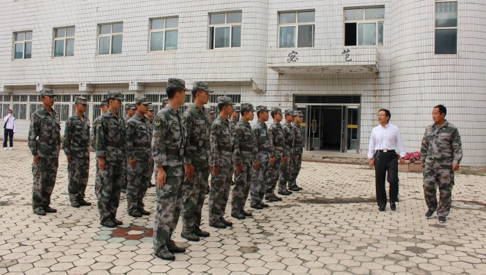 张湘富校长向65319承训部队赠送了“军爱民又谱歌一曲,生敬师再绘画百幅”的锦旗,感谢65319部队对我校军训工作的大力支持。