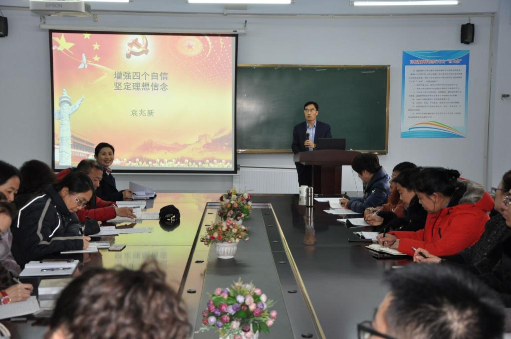 为全面贯彻落实领导干部带头讲党课制度,推进“两学一做”学习教育常态化、制度化,12月12日,副校长袁兆新以《增强四个自信 坚定理想信念》为主题,为基础实训党总支全体党员上了一堂生动的党课。