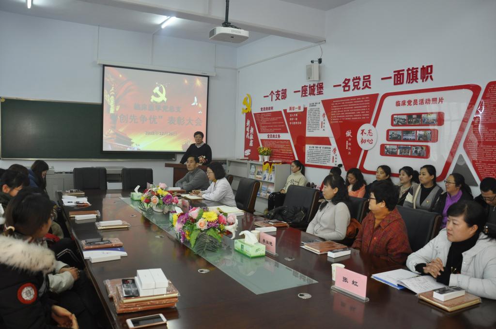 12月26日中午,临床医学党总支在医学楼党员活动室组织召开了2018年度党总支“创先争优”表彰大会。校长薛春志、组织部部长刘洪波出席,党总支全体党员参加会议。会议由党总支书记王才主持。