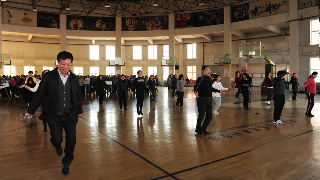 随后,教职工代表向校领导送上祝福,并邀请校领导参加活动。工会主席张旭宣布活动正式开始。校领导和全校270余名女性教职工通过跳绳比赛将庆祝活动推向高潮,大家身轻如燕,激情满怀。赛后工会、妇委会为大家送上祝福,各分工会分别与校领导合影留念。