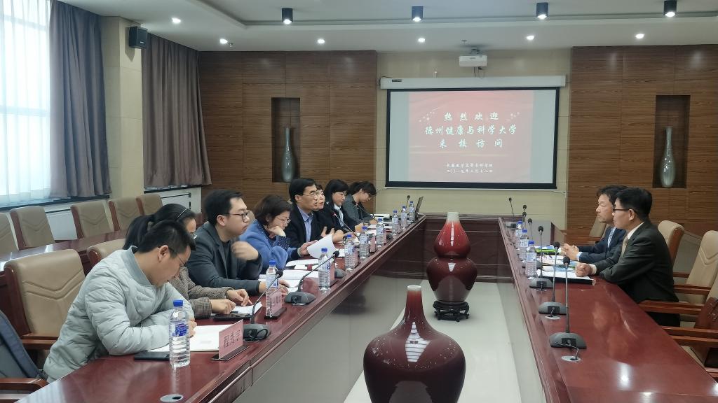 袁兆新对来访客人表示热烈欢迎,对我校办学情况进行了介绍;随后,陈文辉详细介绍了德州健康与科学大学的办学历史以及美国中医药行业教育的现状及未来发展趋势,表达了与我校在中医专业学术交流、针灸实践教学、中药剂研发、师生互访、中医专业合作等方面合作愿望。会上,双方就中医专业合作项目框架进行深入讨论并交换意见;就校际师生交流互访、中医专业合作模式、师资培训、学生短期交流等问题初步达成合作共识。会后,来访客人参观了我校生命科学馆,对场馆的设计理念和教学功能给予高度评价。