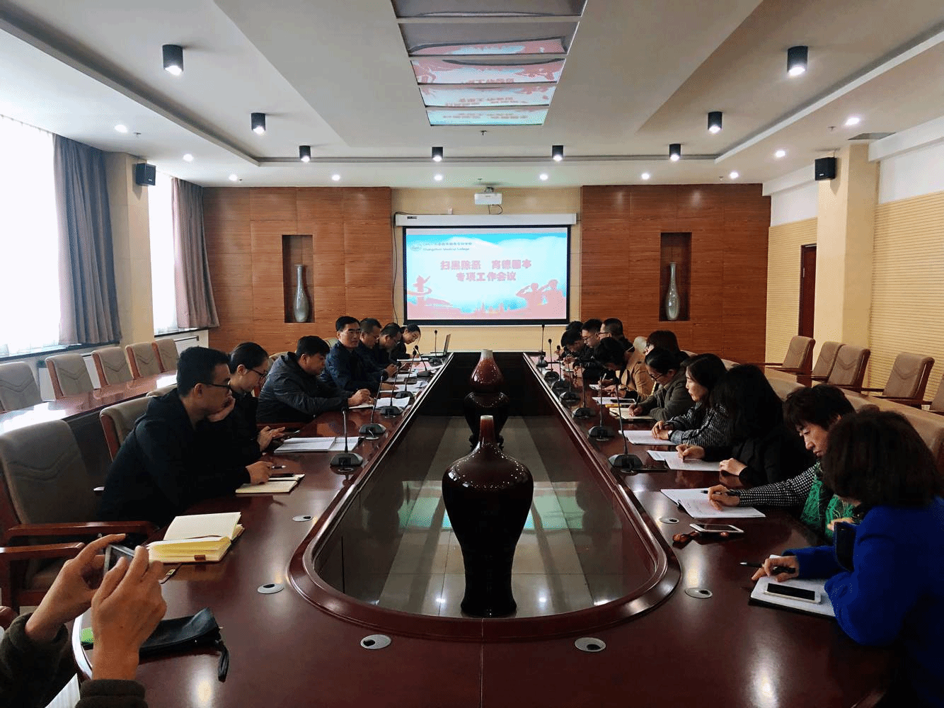 为深入贯彻落实中共中央国务院《关于开展扫黑除恶专项斗争的通知》的重要指示精神,根据学校《扫黑除恶专项斗争实施方案》的工作部署,教务处于4月9日在善教楼二楼会议室组织召开了《扫黑除恶 育德固本专项工作会议》,副校长袁兆新、各教学单位负责人及教务处全体人员参加了会议,会议由袁兆新主持。