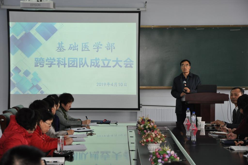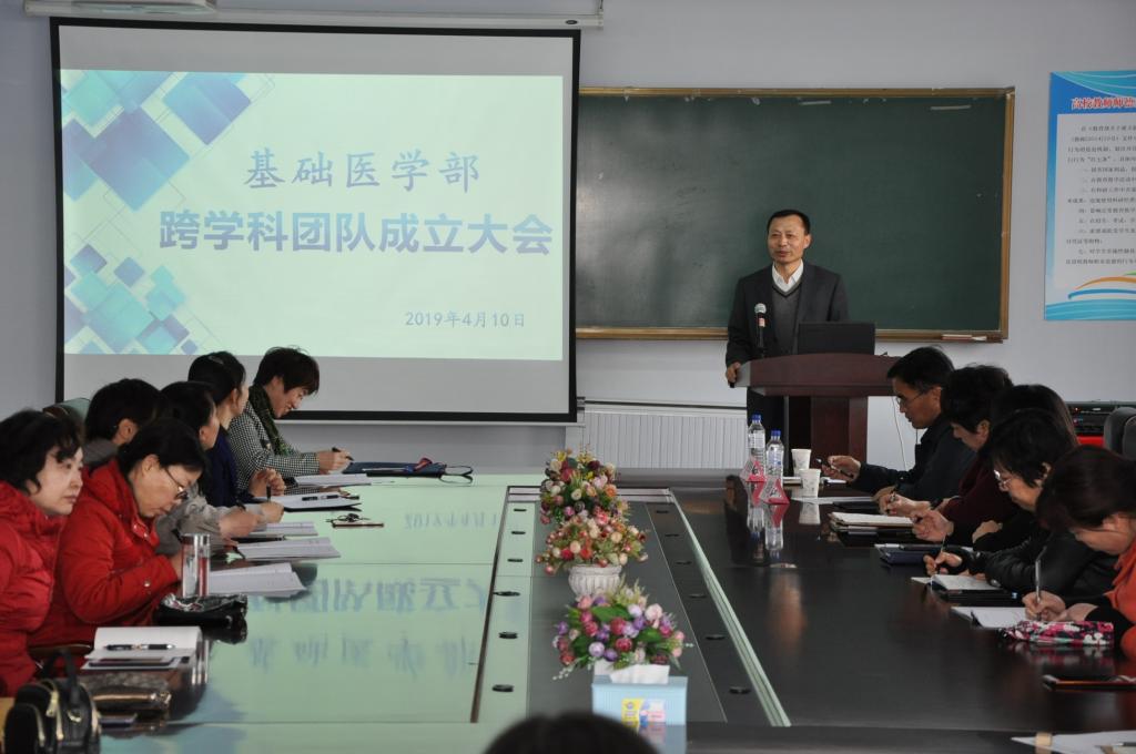 为深入贯彻落实学校“改革创新年”工作要求,进一步创新师资队伍培养模式,促进跨学科师资梯队建设和教师专业能力提升以及更有效的缓解教师集中授课压力,基础医学部于4月10日在401会议室召开了基础医学部跨学科教学团队成立大会。校党委副书记陈贵锋、副校长袁兆新及基础医学部全体人员参会,会议由基础医学部办公室主任任佳伟主持。