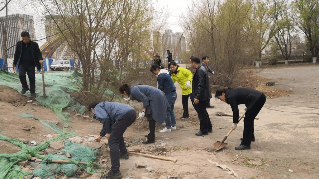 机关第二党支部开展“修缮校园道路”主题党日活动