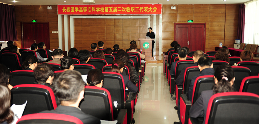 4月29日,长春医学高等专科学校第五届二次教职工代表大会在善教楼二楼报告厅召开,校党委书记姜元生、校长薛春志、党委副书记陈贵锋、副校长李银山、袁兆新和来自七个代表组的共91名代表们参加会议,非职工代表的中层干部列席了会议。大会由工会副主席杜红燕主持。
