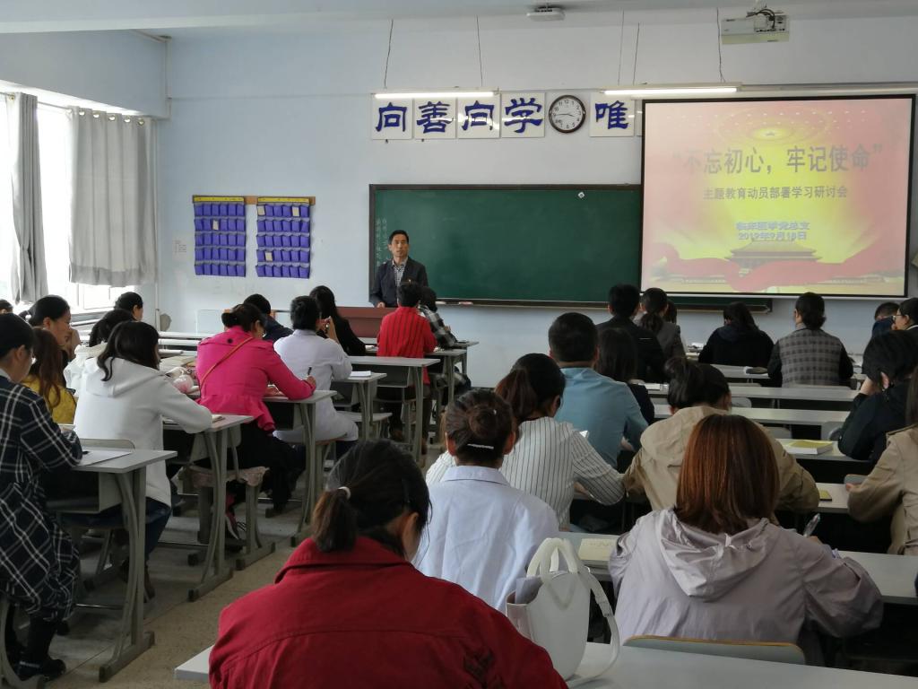 9月18日中午,临床医学党总支在善学楼1219教室组织召开了“不忘初心,牢记使命”主题教育动员部署学习研讨会。会议由临床医学党总支书记王才主持,全体党员参会。