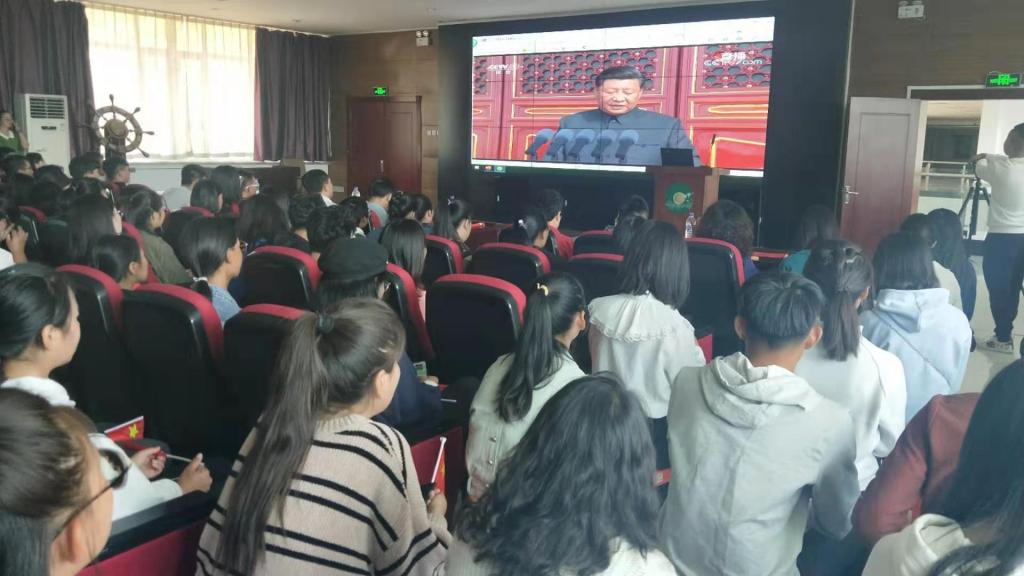 据悉,学校除组织在校学生观看直播外,还有52名同学到文化广场参加吉林省暨长春市庆祝中华人民共和国成立七十周年升国旗仪式,仪式结束后,同学们立刻返校观看直播。