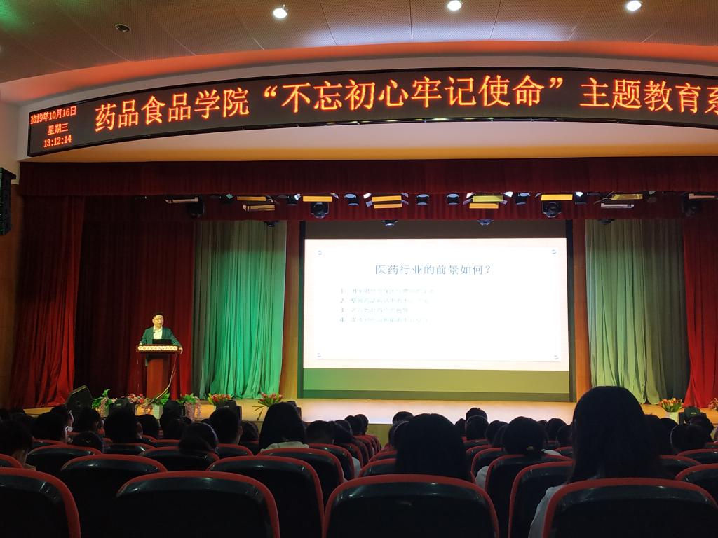 为培养学生的专业认同感及责任使命感,10月16日下午,药品食品学院在图书馆报告厅举行业内专家话专业系列讲座,院长孙莹、党总支副书记高雅静、副院长林大专、相关专业教师及全体在校生参加活动。