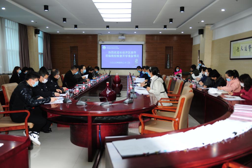 4月22日,长春经济技术开发区文教局副局长陈威、开发区疾控中心专家王立波带领市场监管局、市容环卫局、公安分局、交警大队、应急局、新闻中心、文教局等一行领导和专家莅临我校,通过听取学校汇报、查阅相关资料并进行实地踏查,对我校疫情防控开学准备情况进行全面复查。汇报会在善教楼二楼会议室召开,由副校长(学校疫情防控领导小组常务副组长)李银山主持会议。党委副书记陈贵锋、副校长赵欣及学校疫情防控领导小组相关成员参加了会议。