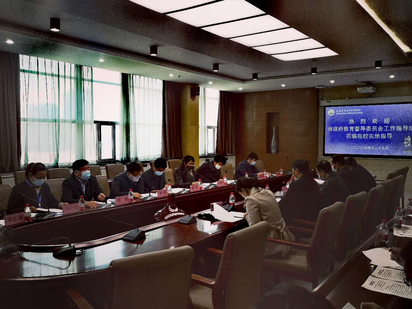 在善教楼二楼会议室,督查组详细听取了党委副书记、校长袁兆新关于学校自疫情发生以来的防控措施和开学返校前的各项准备工作。指导组对照《吉林省高校2020年春季学期开学准备工作指导参考指标》,查看了学校有关疫情防控制度和各种预案、方案和相关文字材料,实地查看了学校正门、学生食堂、药学楼、学生公寓、善学楼和防控物资储备室等重点场所,听取了各部门负责人的现场汇报并观看模拟演练,对关键环节进行了点评,对我校春季开学准备工作情况进行了较深入的了解。