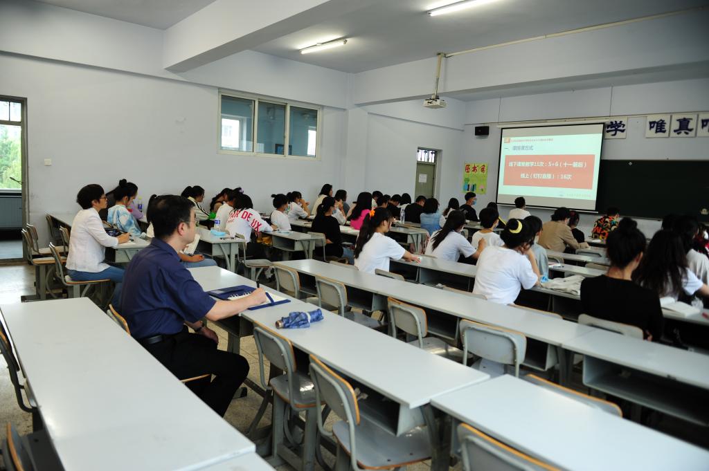 这是一个天高云淡、风清气爽的秋日。阔别八个月之后,一张张可爱的面容终于相聚校园。8月24日,根据上级疫情防控指示,学校与“疫”前行,正式开启新学期教学工作。早八点,党委书记叶春民、校长袁兆新、学术委员会副主任委员孙莹、各学院院长、副院长及教务处全体成员到学校各教学单位进行教学检查。