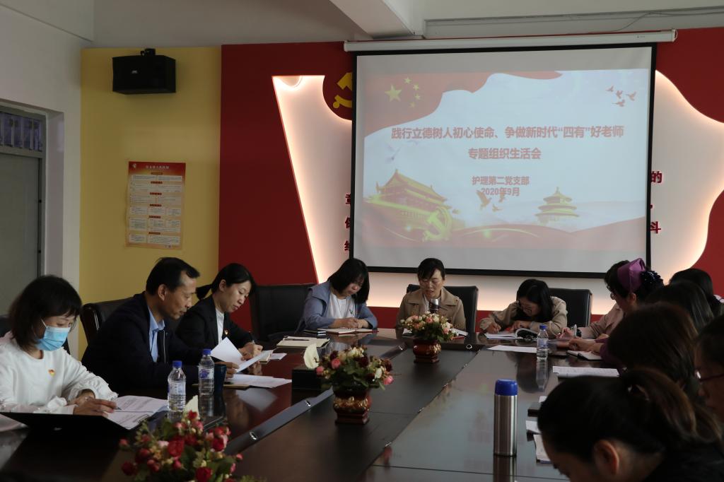 9月30日上午,校党委副书记陈贵锋走进党支部联系点——护理党总支第二党支部,调研党支部“双创强基”行动的落实情况并指导“践行立德树人初心使命、争做新时代‘四有’好老师”专题组织生活会。第二党支部全体党员参会,会议由党支部书记曹玉凤主持。护理党总支书记高寒、副书记赵丽波、组织部郝宇列席会议。