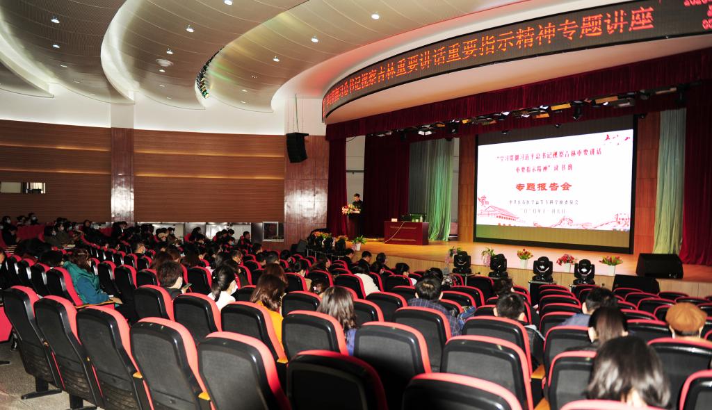 王健从系统梳理习近平总书记九次视察东北重要指示精神入手,全面回顾了东北发展的历史脉络,深入阐明了东北三省的重要战略地位,解读了习近平总书记视察吉林的重大意义。报告结合习近平总书记在长春一汽集团研发总院考察时的重要讲话,描绘了东北老工业基地的转型发展之路,强调了科技强国的战略意义。王健还就习近平总书记对教育的关注重视以及党的十九届五中全会精神做了进一步解释,阐释了“十四五”时期经济社会发展“六个新”的主要目标及其重要意义,对复杂的国际外部环境和不容忽视的不安全因素进行了生动的举例和解读。