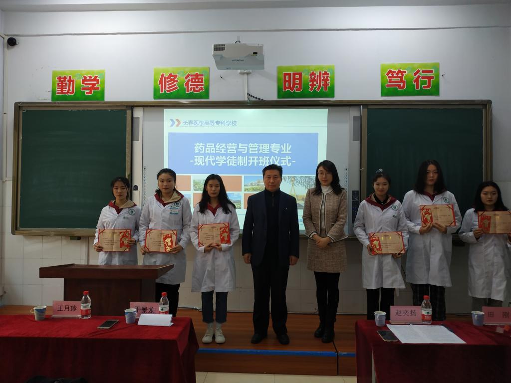 于景龙对吉林大药房领导的到来表示欢迎,他强调吉林大药房是与我校进行校企合作较早的企业之一,多年的合作互惠沉淀出了深厚的文化内涵,与吉林大药房进行现代学徒制项目合作就是最好的证明。校企合作发展到现在,吉林大药房在学校的教材建设、课程建设、技能大赛及师资培养中都发挥着重要的作用,希望学校和企业未来能够更加深入的交流互动,让校企合作迈上一个新的台阶。赵奕扬作为企业代表进行发言,她强调作为吉林大药房现代学徒制班的学生,要好好珍惜这一机会,充分利用学校和企业搭建的平台,努力提高自身专业技能水平,在未来的工作岗位中发挥积极作用。