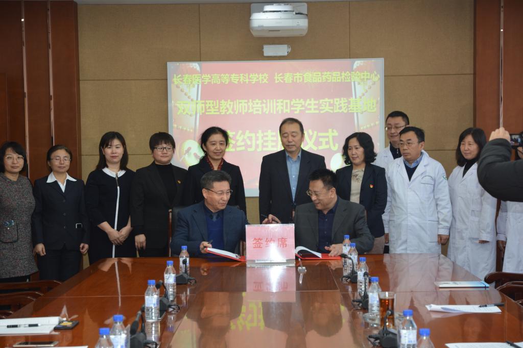 12月22日下午,学校与长春市食品药品检验中心校政合作项目签约暨“双师型”教师培训及学生实践基地揭牌仪式在长春市食品药品检验中心隆重举行。长春市市场监督管理局副局长刘彤,学校副校长孙莹,长春市食品药品检验中心主任郭明义、副主任王彤、副主任李绍刚,药品食品学院院长于景龙、副院长王月珍,药学党总支副书记高雅静以及我校药品食品学院各专业带头人参加了此次活动。