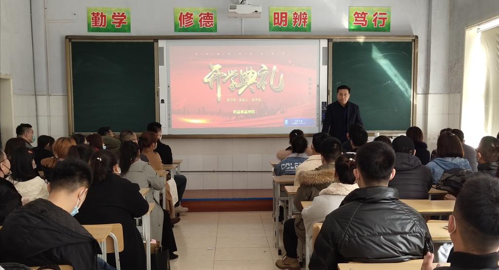 3月9日,药品食品学院举办2020级高职扩招新生开学典礼,院长于景龙、党总支副书记兼副院长高雅静、副院长王月珍,辅导员及61名扩招新生参加了典礼。典礼由学办副主任袁宝欣主持。