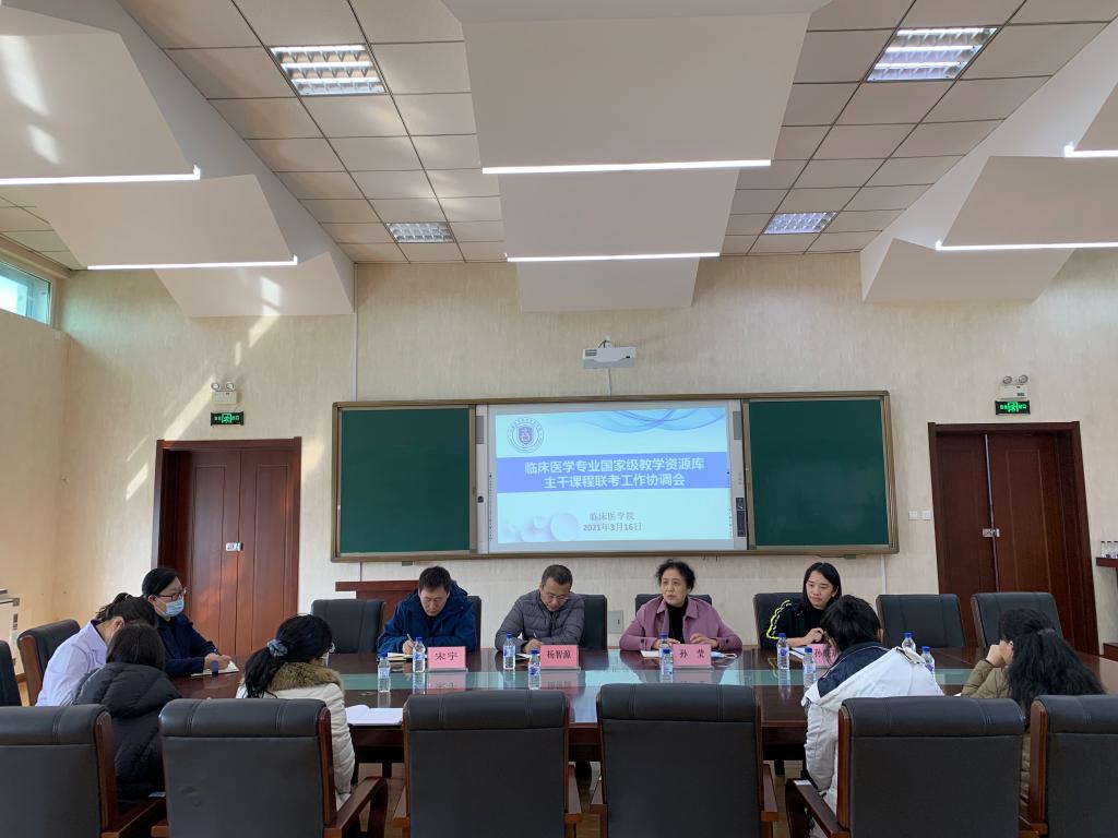 3月16日下午,临床医学院在善学楼五楼会议室召开“临床医学专业国家级教学资源库主干课程联考工作协调会”,副校长孙莹、临床医学院副院长杨智源、基础医学部副主任宋宇及相关专业骨干教师参会。会议由学院副院长孙晓琪主持。