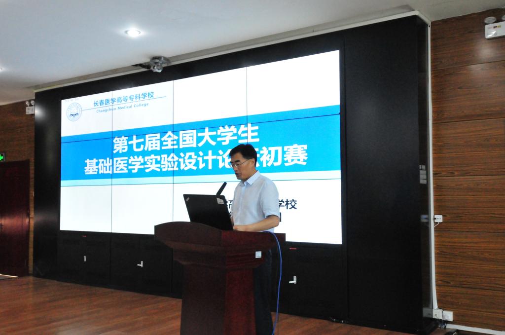 为进一步强化科教协同育人,促进教师树立以学生为本、注重能力和素质培养的教育理念,增强学生的原始创新精神和科研能力,同时为第七届全国大学生基础医学实验设计论坛复赛选拔优秀团队,6月16日下午,基础医学部在善教楼二楼报告厅举行实验设计论坛大赛初赛。比赛邀请吉林大学白求恩医学部学位委员会主席孙连坤教授、基础医学院药理学系学科带头人陈立教授,吉林大学组织学与胚胎学系主任刘佳梅教授和我校总督学王春梅教授、药品与食品学院院长于景龙教授担任评审专家。我校校长袁兆新、教务处处长张虹及基础医学部全体无课教师、各院部学生代表观摩了比赛,比赛由基础医学部办公室主任宋佰慧主持。