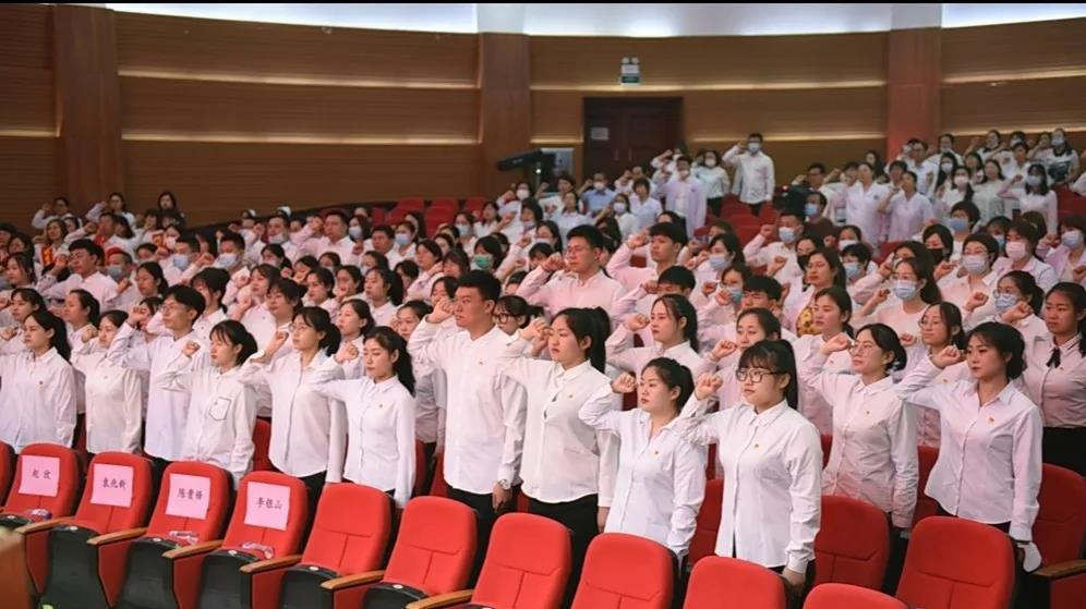 在党委书记叶春民的领誓声中,学校新发展的68名新党员进行了庄严的入党宣誓,与会的其他党员也共同重温了入党誓词。