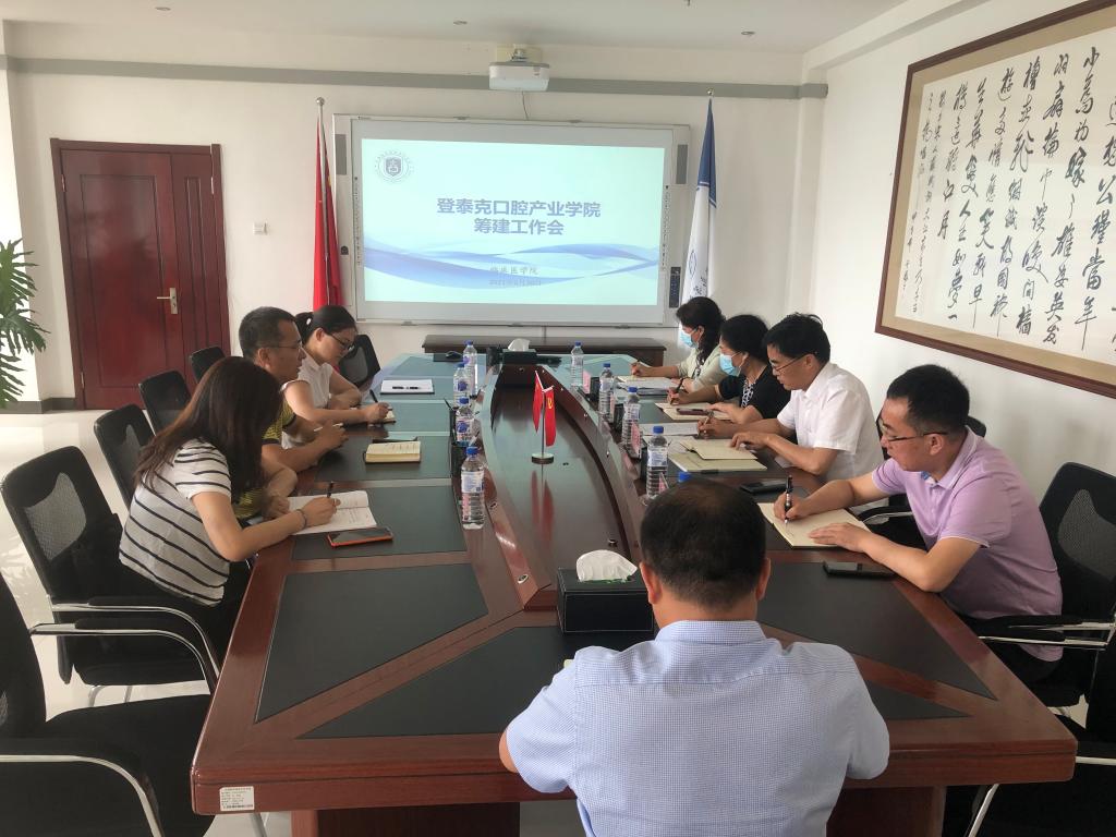 为深入推进产教融合、校企合作,有效促进教育链、人才链与产业链、创新链有机衔接,提高口腔专业群人才培养质量,服务吉林健康产业高质量发展,6月30日上午,临床医学院在善教楼十楼会议室,组织召开登泰克口腔产业学院筹建工作会。校长袁兆新、副校长孙莹、学校办公室主任马龙、教务处处长张虹、临床医学院院长杨智源以及相关人员参加会议,会议由杨智源主持。