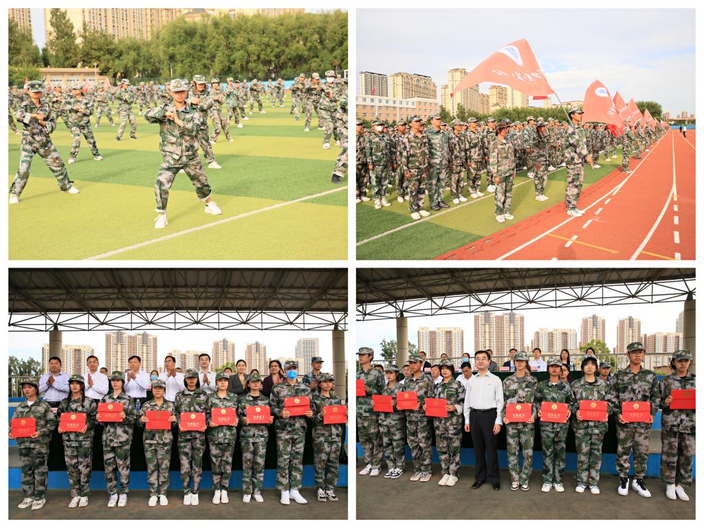 同学们在分列式上步伐有力、英姿飒爽,动作整齐、斗志昂扬。经过身体上的锤炼和精神上的洗礼,同学们得到了蜕变与成长,用自己努力的汗水和精彩的表现赢得在场观众的阵阵热烈掌声。分列式后,由400人组成的军体拳方队进行了气势磅礴的表演展示,他们闻令而动、反应敏捷,干脆利落、势如霹雳,展示了我校2021级学子崭新的精神风貌。