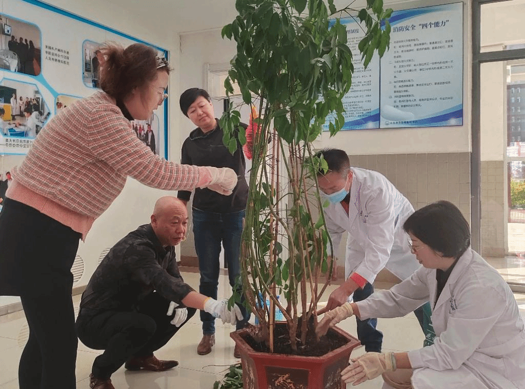 临床实训部主任赵冰带领全体党员,将临床实训部四个楼层近50盆花草进行修剪枝叶、松土、添土、施肥,并对有虫害的花草进行精心养护,历时两个多小时,使临床实训部实训教学环境变得更加优美宜人、赏心悦目,为广大师生营造更加舒适的教学氛围。