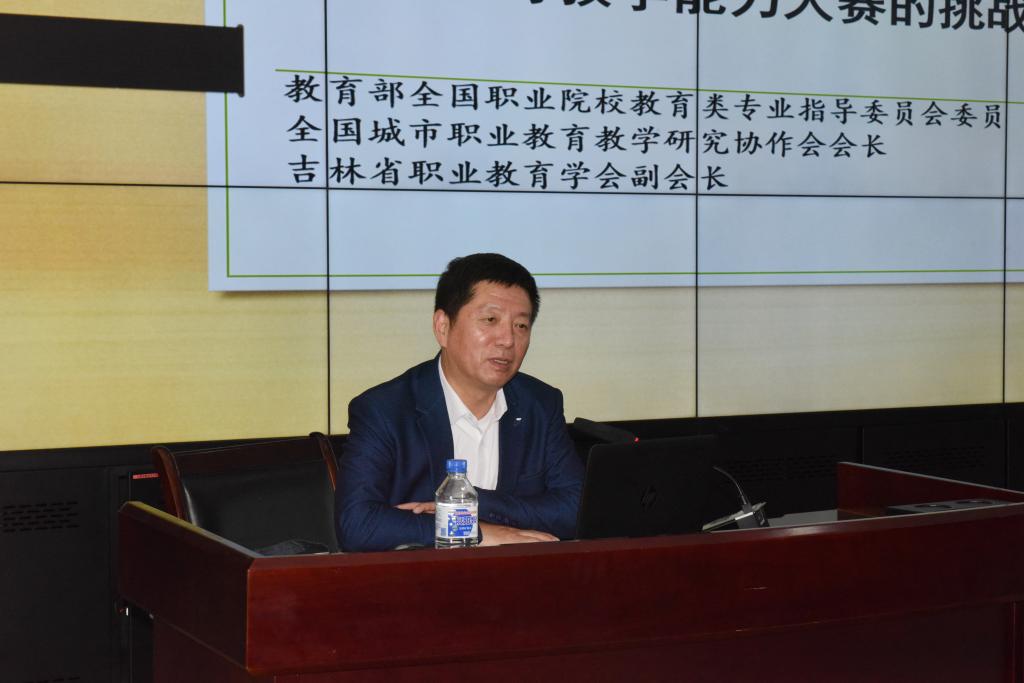 10月13日,2021年教学能力大赛总结会暨2022年教学能力启动会在善教楼报告厅举办。特别邀请教育部全国职业院校教育类行业指导委员会委员、全国职业技能大赛和教学能力大赛专家裁判、吉林省特级教师、吉林省职业教育学会副会长、现任长春市政府责任督学曲晓绪教授到校培训,副校长孙莹、总督学王春梅、教务处处长张虹、各院部主任、教学副主任、全体专任教师及入职三年内兼职教师参加本次会议。会议由教务处副处长马艳慧主持。
