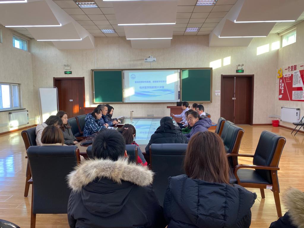 为更好落实学校“教学为中心,科研为导向”的工作方针,根据学校《关于开展“教授大讲堂”活动实施方案》的要求,11月18日上午,临床医学院在善学楼546会议室开展了教授大讲堂活动。临床医学院院长杨智源、临床医学院党总支副书记杨敬然及院部全体无课专兼职教师参加了活动。活动由临床医学院杜林老师主持。