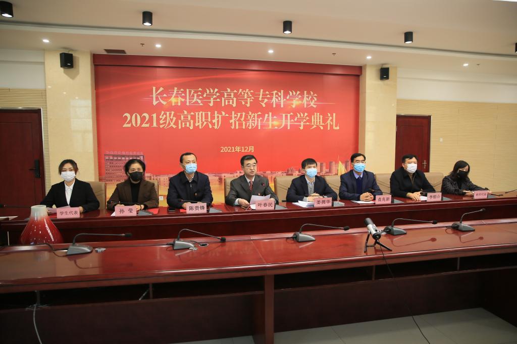 为贯彻落实国家关于高职百万扩招的重大决策部署,做好吉林省实施“一村一名大学生村医”计划,推动我省实现脱贫攻坚与乡村振兴的衔接。12月24日,我校在善教楼二楼会议室以视频直播的方式,隆重举行2021年高职扩招新生开学典礼。典礼由学校党委书记叶春民主持。