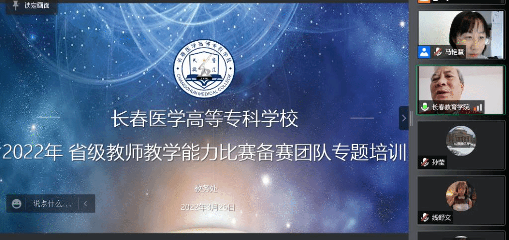 3月26日上午,我校在腾讯会议进行了线上教师教学能力省赛预参赛团队专项培训会。吉林省教师教学能力比赛评审专家赵有生院长对六个省赛备赛团队进行了一对一点评和指导。会议由教务处副处长马艳慧主持,副校长孙莹、教务处处长张虹、相关院部教学副主任和备赛团队教师参加了本次培训。