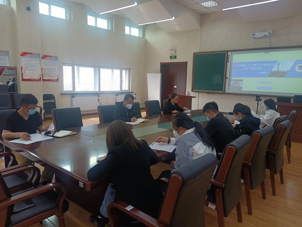 受疫情影响,今年就业形势严峻,实习工作也面临复杂情况。学院积极面对变化,紧密结合教育部等八部委《职业学校学生实习管理规定》和学校《长春医学高等专科学校 2022 届毕业生“奋斗有我‘就’在吉林百日冲刺行动”工作方案》的要求,细致谋划、周密部署。会上,杨敬然传达了近期学校有关就业实习工作的要求,宣读了《临床医学院2022届毕业生就业创业工作方案》和《临床医学院2023届毕业生实习方案》,学办主任徐晓玉介绍了实习期间学生安全管理和实习住宿的相关要求,就业干事易昕烨针对就业数据填报和落实未报名专升本学生就业工作进行指导,实习干事郗庆对学院制定的实习管理相关制度进行了介绍。