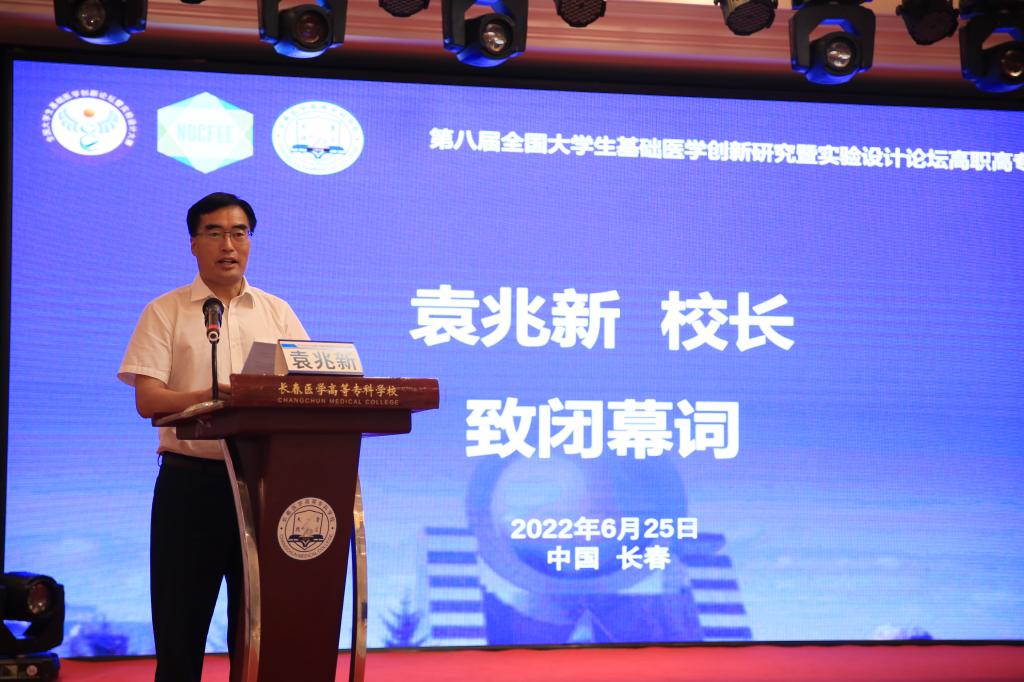 奋斗长春、创新长春、友谊长春。6月25日,第八届全国大学生基础医学创新研究暨实验设计论坛高职高专组预选赛在“北国春城”——长春举办。比赛由高等学校国家实验教学示范中心联席会基础医学组、高等学校基础医学创新创业协同育人工作组主办,长春医学高等专科学校承办。高等学校国家级实验教学示范中心联席会基础医学组副组长高国全、汪思应教授,高等学校基础医学创新创业协同育人工作组组长李凌教授,沧州医学高等专科学校副校长王衍教授,长春市卫生健康委员会副主任张晶,我校校长袁兆新教授,以及来自全国本专科院校的30位专家评委出席了比赛开幕式。开幕式由我校副校长孙莹教授主持。