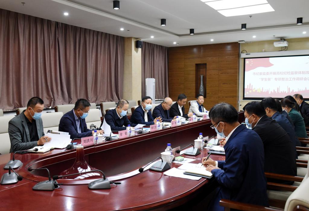 我校党委书记杜影就学校基本情况、全面从严治党主体责任、监督责任履行情况进行汇报;校长袁兆新就学校食堂管理及“学生餐”专项整治工作、纪委书记赵春城就学校纪委履行纪检监察职责情况分别进行汇报。随后,调研组同志就相关调研议题进行广泛深入的座谈交流。