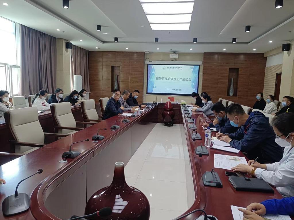 根据省市教育行政部门关于高校新冠肺炎疫情防控工作要求,为全面做好学校疫情防控工作,实现高效、有序、准确地完成全校各类人员核酸检测工作,做好学生返校准备工作。2022年9月19日上午,我校在善教楼二楼会议室召开学校核酸采样培训及工作启动会。校长袁兆新、相关职能处室负责人、核酸采样小组成员及教师志愿者参加会议。会议由学校核酸检测小组组长杨智源主持。