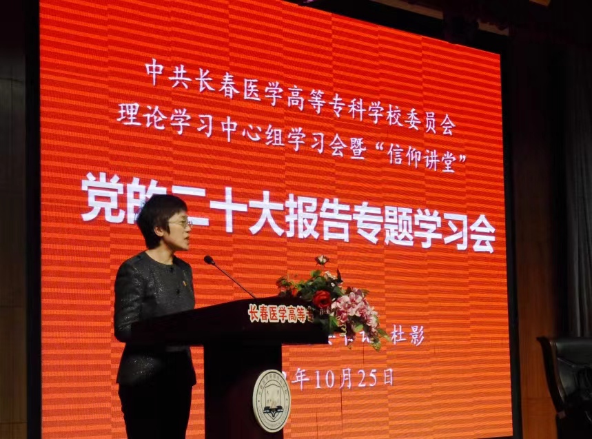 一要深刻领会过去五年工作和新时代十年伟大变革的重大意义,深刻领会我国发展面临的新形势、新任务,聚焦二十大确立的中心任务,积极把思想认识转化为真抓实干的新动能和新效能。二要深刻领会教育发展的历史机遇和重要挑战,聚焦教育强国的中国特色和本质要求,聚焦高质量发展,坚持自信自立、守正创新,坚守使命任务,以高质量发展检验各项工作成效。三要深刻领会以中国式现代化推进中华民族伟大复兴的使命任务,对标医学职业院校的职责使命,用实际行动助力吉林省“一主六双”高质量发展战略和长春市现代化都市圈建设,深入落实提质培优行动计划,努力培养更多高素质高技能的医药卫生健康人才。四要深刻领会以伟大自我革命引领伟大社会革命的重要要求和团结奋斗的时代要求,坚持不懈抓好学校党建和思想政治工作,开好习近平新时代中国特色社会主义思想概论课,持续深化思政课改革创新,推动习近平新时代中国特色社会主义思想在学校落地生根,见行见效。