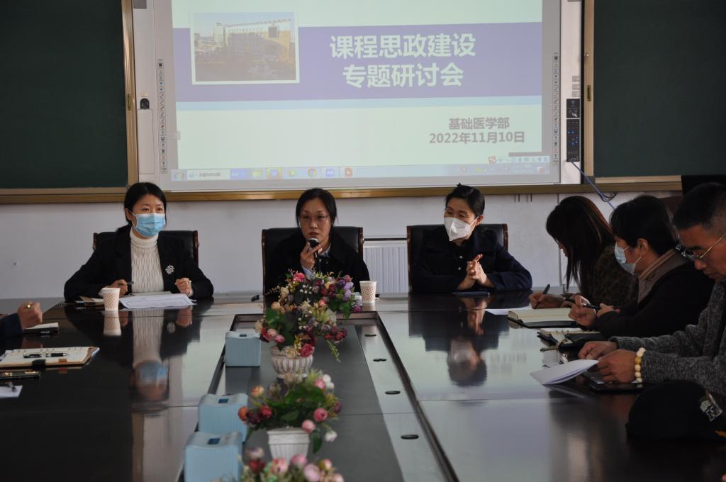研讨会上,王萍结合党的成立、发展以及二十大召开的背景从思政元素的挖掘、思政素材的收集及实践过程中的教育等方面与学部老师进行了交流与分享。随后,学部教师张淑芳、刘泱泱就课程思政教学实践中的经验和感悟进行了分享;李慧超就“人体解剖学”课程思政应用情况、具体思政设计案例及教学效果进行汇报;姚晓媛以病理学具体教学内容为例展示了如何将课程思政元素有效融入课堂教学中。四位专业课教师从不同课程特点出发,展示了思政元素的挖掘方法与融合技巧,给与会教师提供了有价值的参考。