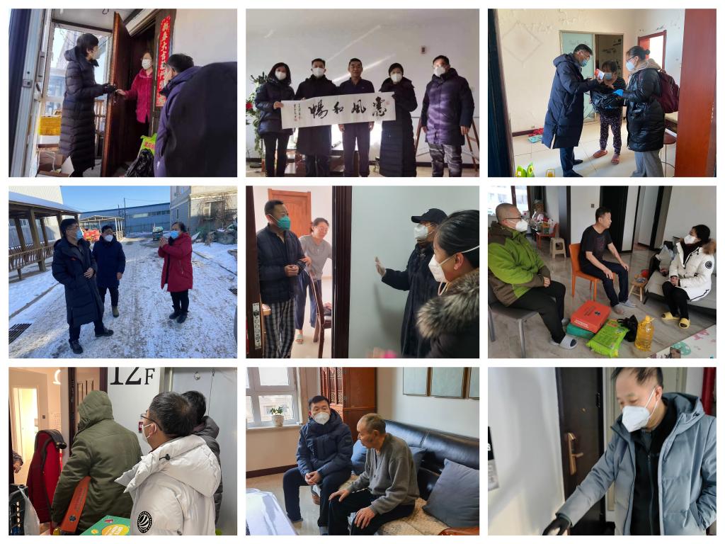 为深化巩固我为群众办实事的成果,帮助困难群众温暖过节,1月4日上午,党委书记杜影带队,与校领导班子成员前往永兴街道聚业社区、永顺社区、远洋社区包保楼栋的住户家,为特殊群众、空巢老人送去了大米、豆油、爱心抗疫包等慰问品,并送去了新春祝福。